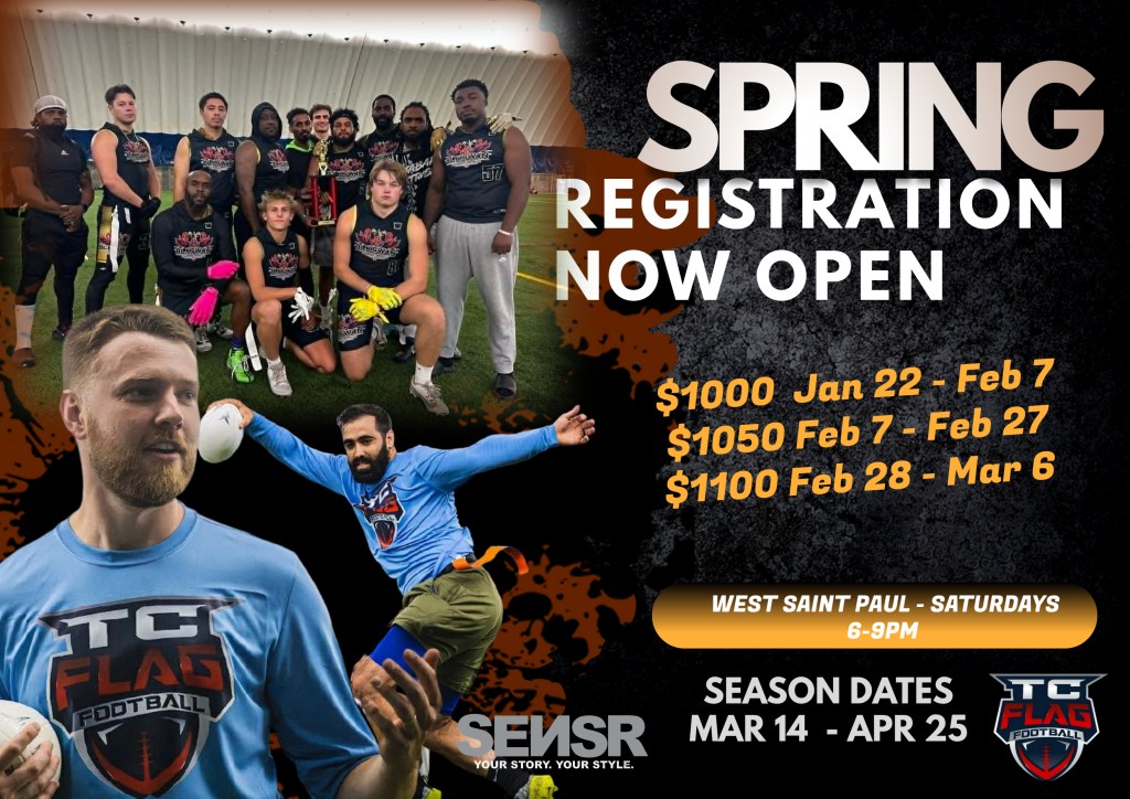 TC Flag Football is the premier flag football league in the Twin Cities, built for players who love the game and the community around it. With divisions for all skill levels and games held at top-tier indoor facilities, we provide a competitive, organized, and inclusive football experience year-round. Whether you’re chasing championships or just looking for fun on the field, there’s a place for you here.
